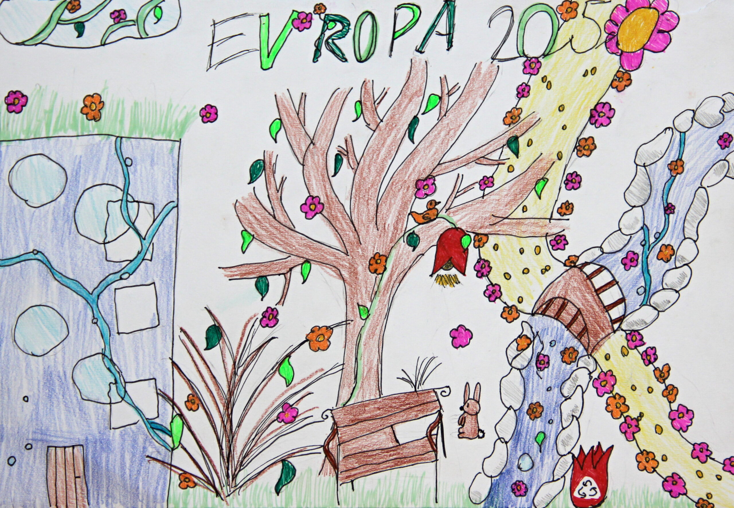 Popis: Mám ráda přírodu a to mně vedlo k nakreslení tohoto obrázku. Přála bych si, aby takto vypadalo sídliště U Cukrovaru.